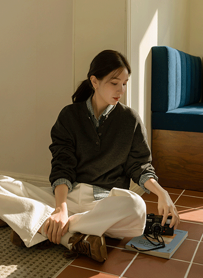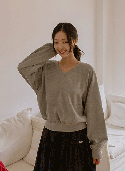 적당한 파임의 브이넥 맨투맨이라 단독으로 입어도~ 안에 티셔츠를 레이어드를 해도 예쁘구요! 작은 자수가 브랜드 감성을 더해주는 포인트랍니다♥ 거기에 톡톡한 3단 쭈리로 비침 없이 든든하게 입어요 -