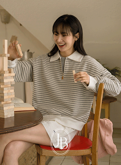 캐주얼한 무드가 느껴지는 단가라 반집업 맨투맨이에요~ 가죽 지퍼가 은근히 포인트가 되어 매력적이구요 반바지, 스커트, 팬츠 등등 다양한 하의와 코디하기 쉬워요! -
