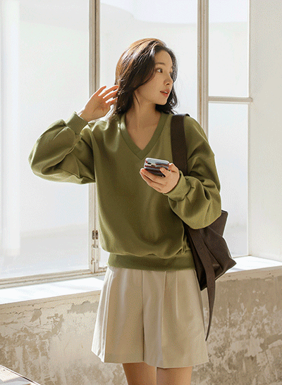 간절기 시즌에 가볍게 입기 좋은 특양면 맨투맨에 브이넥으로 답답하지 않구요, 낙낙한 루즈핏으로 캐주얼하면서 편안하게 착용 가능한 아이템이랍니다 -
