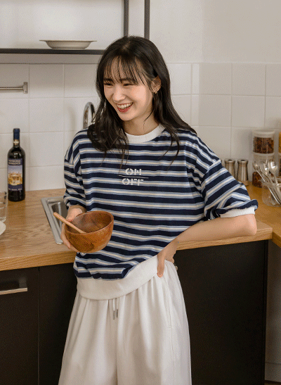 캐주얼한 무드의 스트라이프 패턴이 포인트가 되어 이지하게 입기 좋은 반팔맨투맨이에요~! 작은 레터링으로 밋밋하지 않아요 - 19,800원