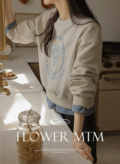 플라워 프린트로 로맨틱한 페미닌 무드가 느껴지는 맨투맨이구요~ 적당한 세미 크롭으로 부담 없이 산뜻하게 입으면서 다리까지 길어 보이며, 톡톡한 3단 쭈리로 비침 걱정마저 없답니다! -