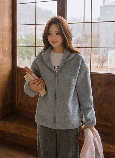 휘뚜루 마뚜루 데일리 아이템으로 입을 수 있는 뽀글이 후드집업이구요, 낙낙한 품이 군살을 커버해주어 도톰한 상의와 함께 입어도 좋아요! -