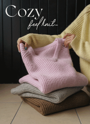 도톰한 니트에 힙을 살짝 덮어주어 부담없이 입기 좋구요, V넥 디자인으로 목 라인이 예뻐 보이는 아이템이에요 -