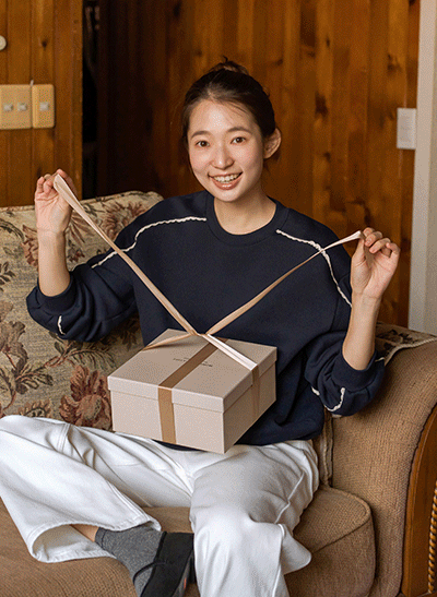 적당한 파임의 브이넥 맨투맨이라 단독으로 입어도~ 안에 티셔츠를 레이어드를 해도 예쁘구요! 작은 자수가 브랜드 감성을 더해주는 포인트랍니다♥ 거기에 톡톡한 3단 쭈리로 비침 없이 든든하게 입어요 -