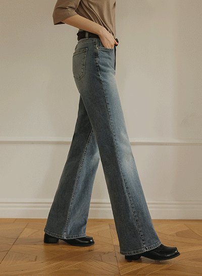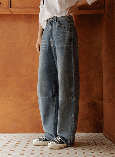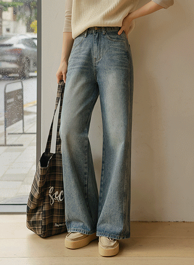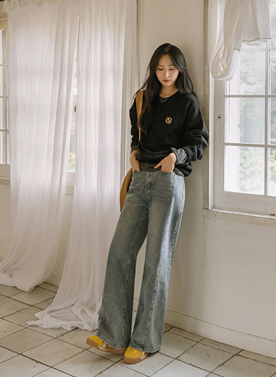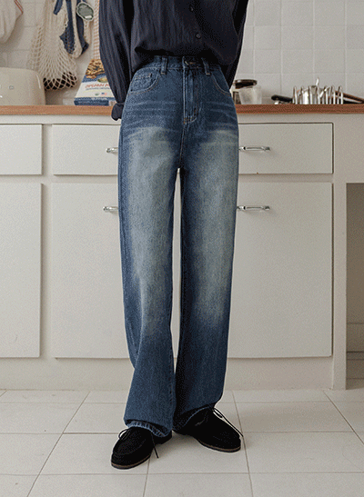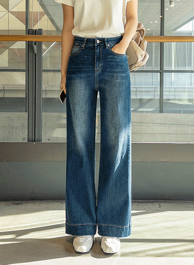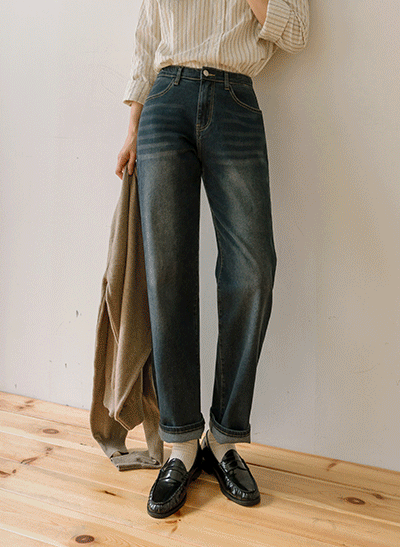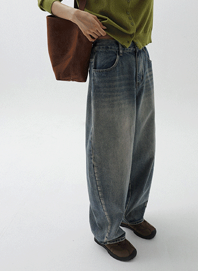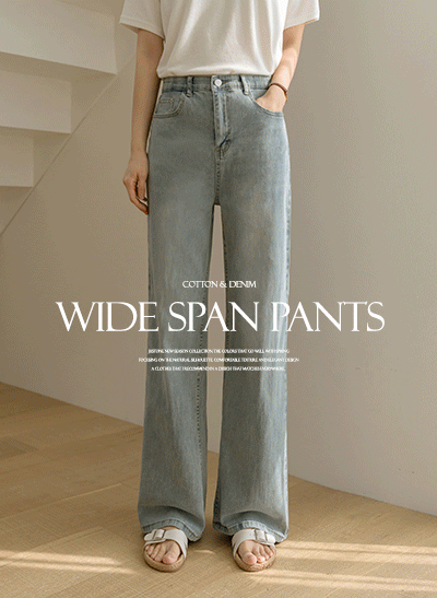 빈티지한 색감에 빠진 편안한 스판 데님이에요~ 군살 부각이 없도록 여유있게 일자로 똑- 떨어지는 와이드 핏으로 부담 없이 데일리하게 입기 좋아요! -