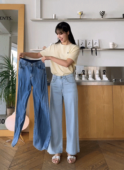 부드러운 원단에 유연한 스판까지 고루 갖춘 데님이에요! 체형이 예쁘게 정돈되어 보이는 와이드핏이며, 2가지 기장 옵션으로 만나볼 수 있답니다 -