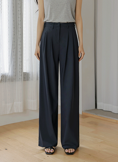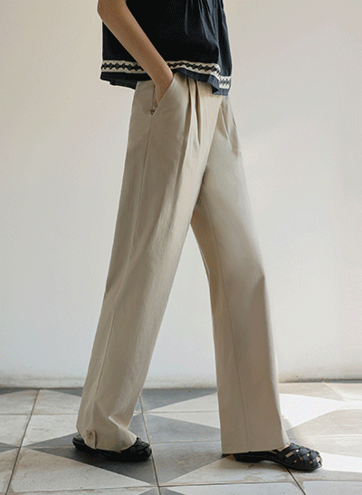 - 5DA31341NN_젤던 밑단비죠 핀턱 코튼슬랙스