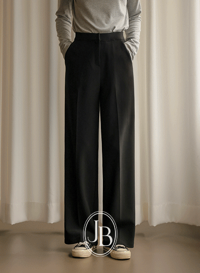 와이드 밴딩과 여유 일자핏으로 다이어트 효과 제대로 느낄 수 있는 슬랙스! 탄탄하면서도 쫀쫀한 스판 트윌 원단으로 후줄근함 없이 고급스러우며, 블랙 1컬러라 교복 바지처럼 매일 입어도 질리지 않아요 -