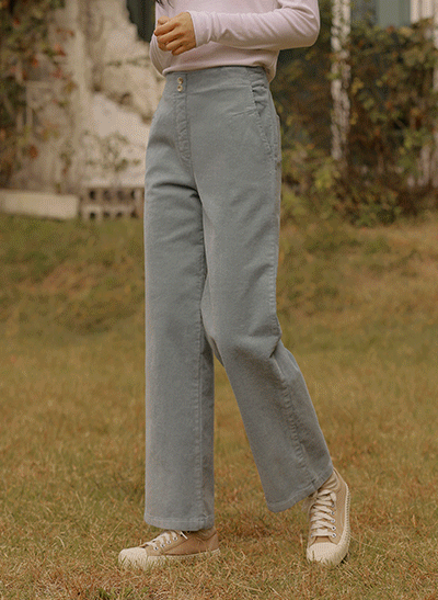 화사한 색감이 시선을 사로잡는 골덴팬츠에요! 낙낙한 와이드핏이라 하체의 단점을 커버해주어 편안하게 입기 좋고, 투버튼이 포인트가 되어 상의를 넣어 입어도 좋아요 -