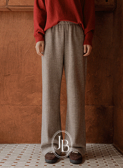 겉기모로 따뜻하게 입어지면서 우수한 신축성으로 편안함까지 갖춘 밴딩 슬랙스구요! 고급스러운 헤링본 패턴이 세련된 무드를 더해주며, 일자 와이드 핏이 군살만 쏙 커버해주어 깔끔하게 입기 좋아요~ -