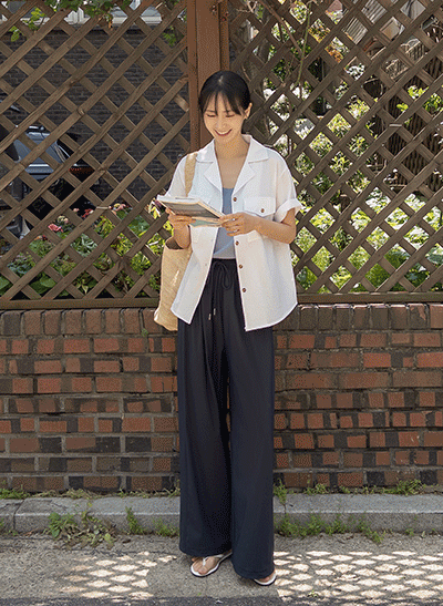 올밴딩에 낙낙한 와이드핏으로 편안하게 입기 좋은 팬츠에요! 뒷절개가 은근 포인트가 되어주는 이지템이에요~ 숏,기본,롱 3가지 기장감으로 구성되어 체형에 따라 골라 입어요 -
