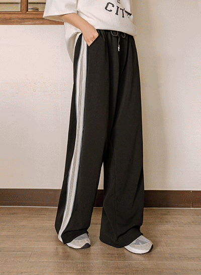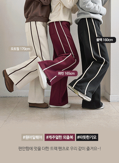 편안함을 멋스럽게 풀어낸 배색 라인의 트랙팬츠라 꾸안꾸 스타일링이 가능하구요~ 밑단 스트링으로 조거&와이드 2가지로 핏 연출이 가능하며, 쫀쫀한 져지 소재감으로 편안하게 착용돼요! -