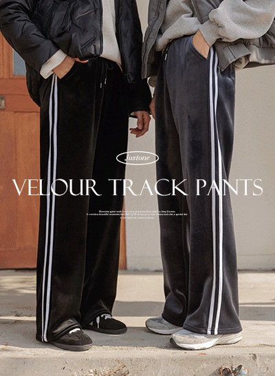 편안한 트랙 팬츠를 벨로아 소재로 트렌디하고 고급스럽게! 도톰한 융기모가 본딩된 벨로아 원단으로 한겨울에도 따뜻하게 입으며, 캐주얼한 이지 팬츠를 꾸안꾸 무드로 멋스럽게 입을 수 있어요~ -
