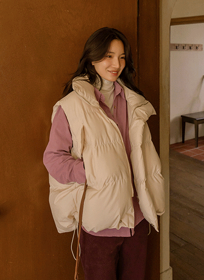 가벼우면서 든든한 웰론솜으로 데일리로 휘뚜루 마뚜루 입기 좋은 패딩조끼구요, 루즈한 핏으로 넉넉한 상의와 함께 입어도 좋은 아이템이에요 -