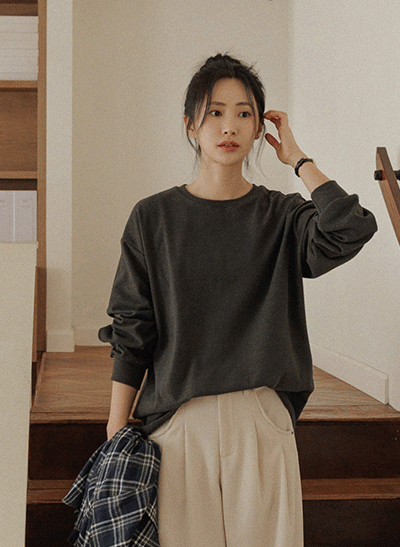안쪽에 부드럽고 포근한 속기모 소재로 찬바람을 막아주어 따듯하게 입기 좋구요, 반목 디자인으로 답답하지 않아 데일리로 입기 좋은 기본 티셔츠에요 -