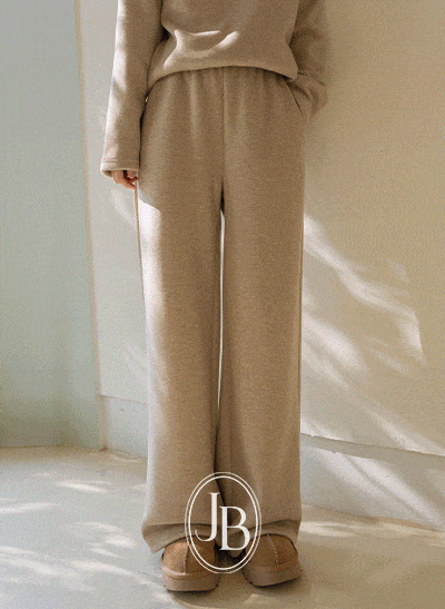 이지하게 즐기기 좋은 와이드 핏의 밴딩 팬츠이며, 니트지 같은 울 터치 소재와 도톰한 밍크 기모로 보온력이 우수하여 따뜻하게 착용돼요! -