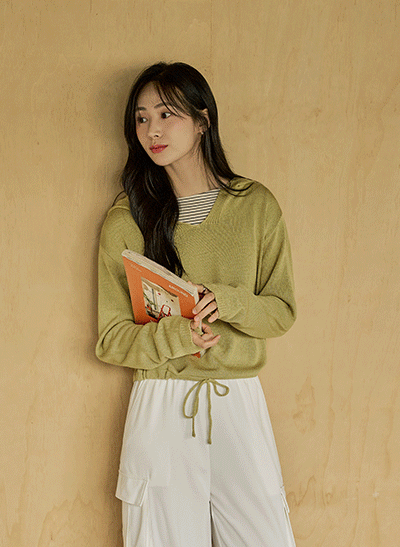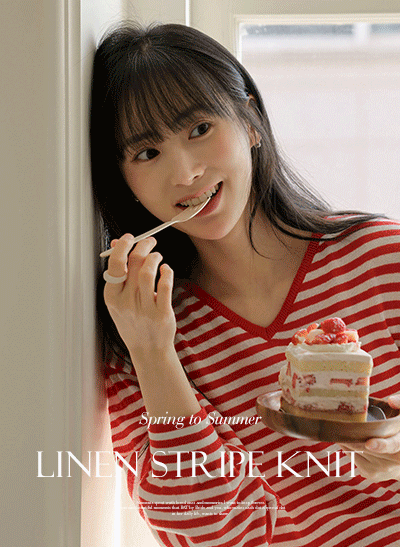 - 5DA31335NN_바셀 쿨린넨 컬러단가라 V니트