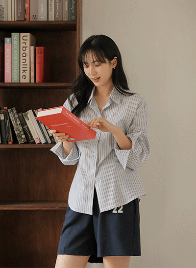 물에 탄 듯, 은은한 컬러감이 매력적인 멀티스트라이프 셔츠구요, 루즈한 핏감으로 체형을 커버해주어 편안하게 입기 좋아요 데일리는 물론 출근룩으로 입어도 좋아요! -
