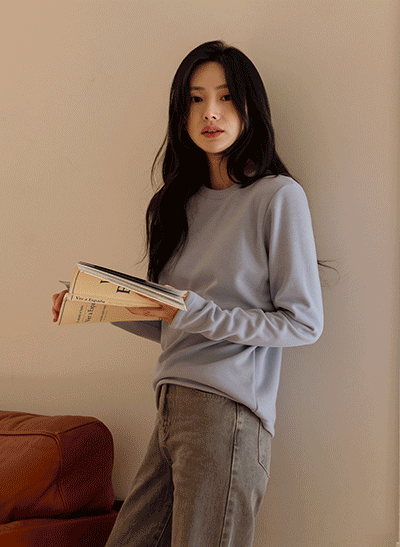 내추럴한 반목 티셔츠로 목을 조이지 않아 편안하게 착용 가능하구요, 안쪽에 부드러운 속기모로 f/w에 이너로 입기 좋은 아이템이에요 -
