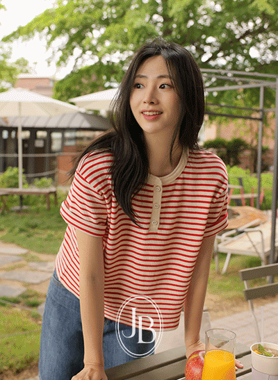 입체적인 와플짜임으로 멋스럽고, 쭉쭉- 탄력있는 소재로 편안한 티셔츠! 반오픈 단추 단작 넥라인에 배색으로 캐주얼한 포인트가 되어주며, 여름 시즌에 없어선 안 될 스트라이프 반팔 티셔츠에요! -