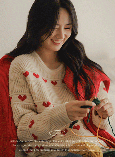 하트 패턴이 러블리한 포인트가 되어주는 도톰한 니트에요 단독으로 입어도 포인트가 되어주는 아이템이라 소장을 추천드려요 -