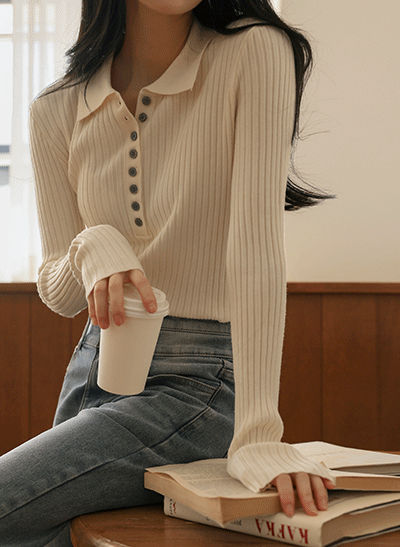 - 4DA32211CW_폴드 단작 카라 골지니트