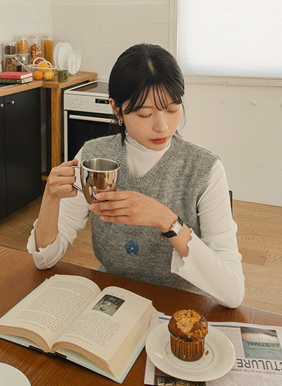 내추럴한 넥라인으로 목을 따듯하게 만들어주며, 슬림하고 쫀쫀한 니트로 바디에 편안하게 다가와 이너로 입기 좋은 아이템이에요 -
