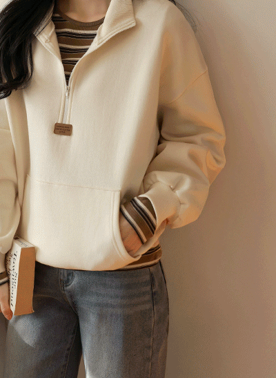 편하게 입기 좋은 반집업 디자인에 레더패치 장식으로 포인트가 되어주는 아이템이에요 움직임이 편안 넉넉한 핏에 스트링디테일로 캐주얼하게 입으시기 좋답니다 -