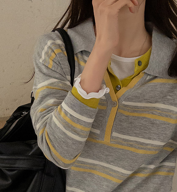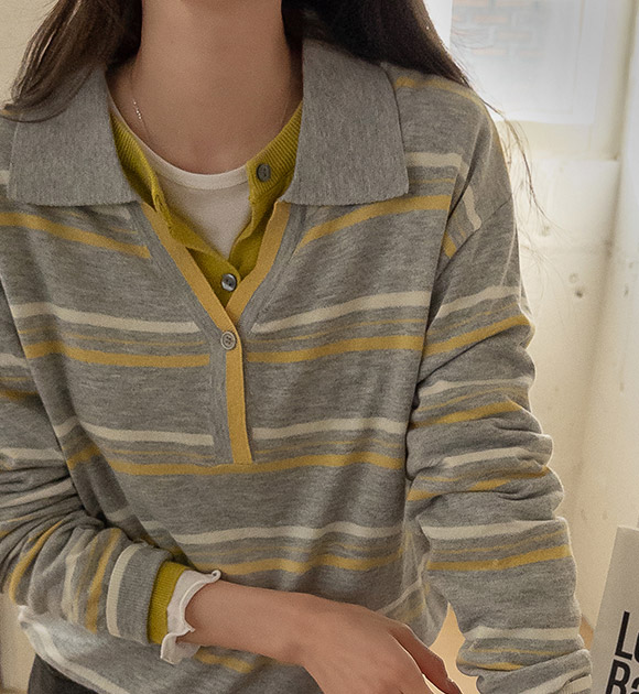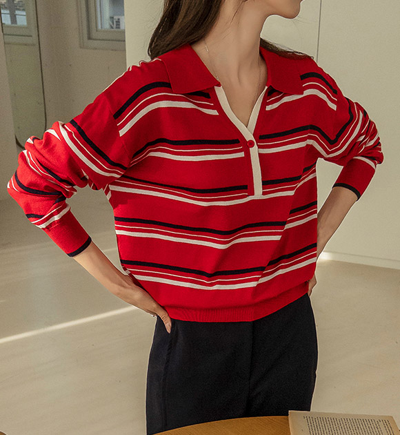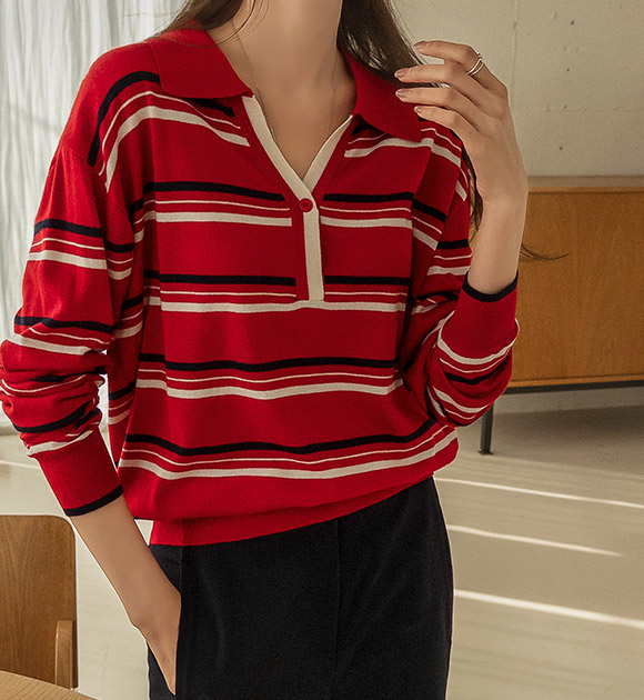 톤업 컬러줄지 소프트 카라니트