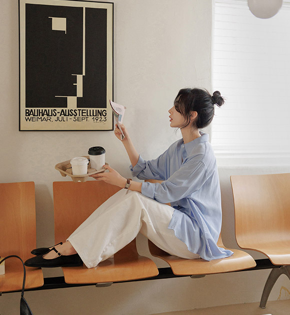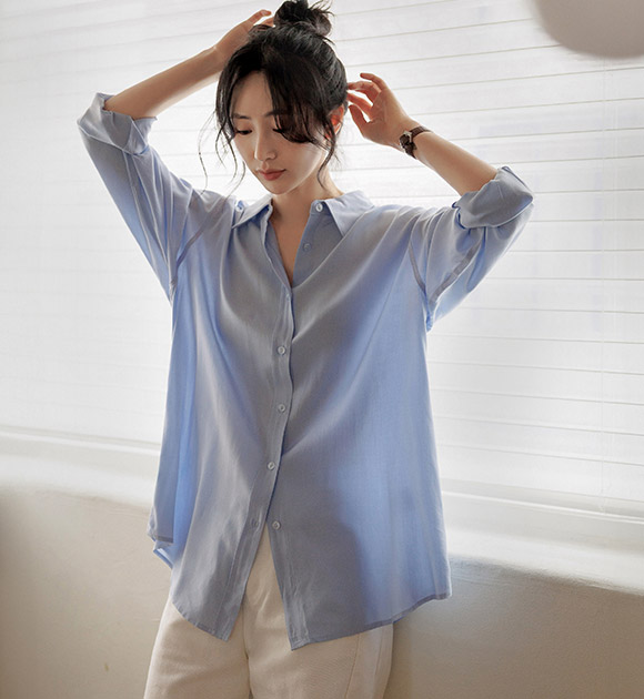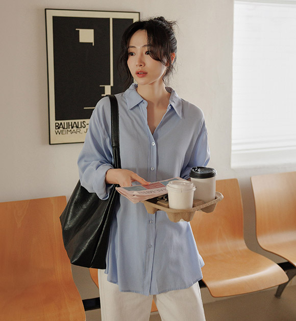 시원하게 찰랑이는 텐셀 소재로 가볍게 입기 좋은 루즈핏 셔츠구요, 넉넉한 품으로 체형을 싹- 커버해주어 여리여리하게 입기 좋은 아이템이랍니다
