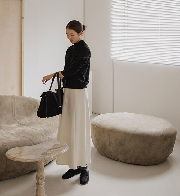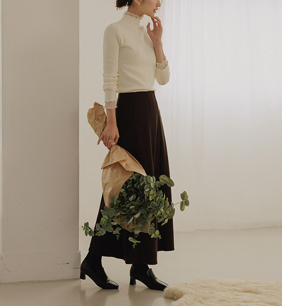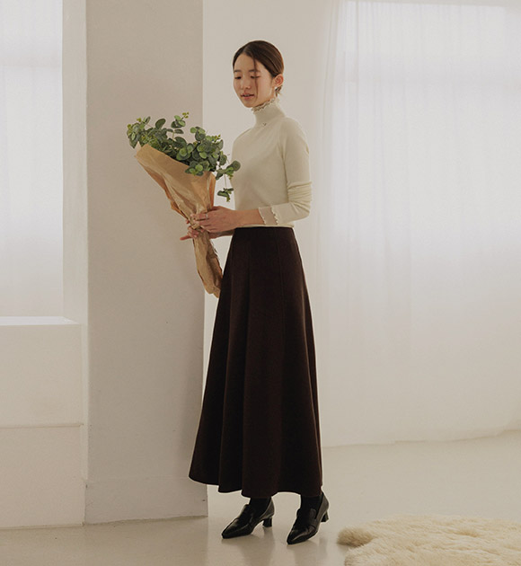 감쪽같은 깔끔한 인밴딩이 허리 라인을 늘씬하게 잡아주며, 절개 디테일로 부해보이지 않게 차르르 퍼지는 플레어 라인이 우아한 훌스커트예요~ 거기에 도톰한 밍크 기모로 포근하고 따뜻하게 착용된답니다!