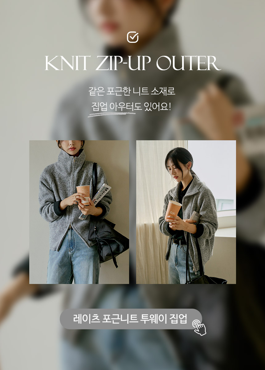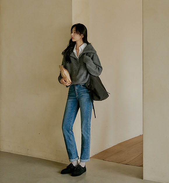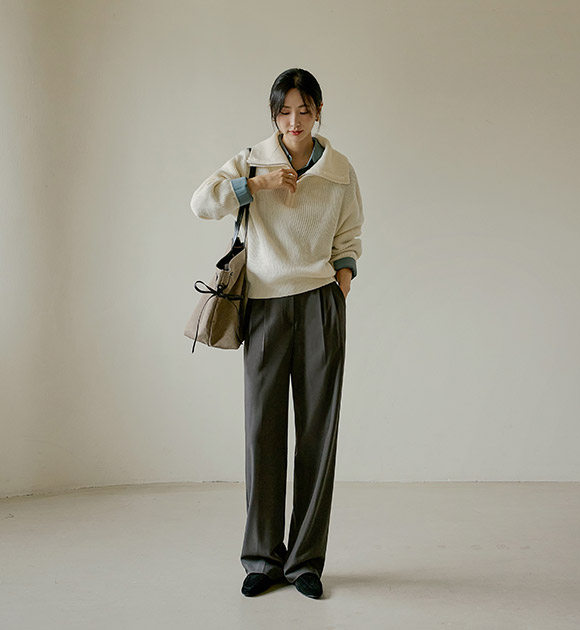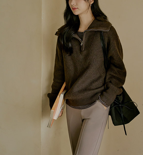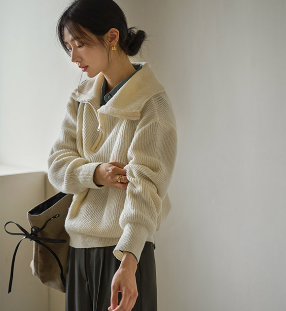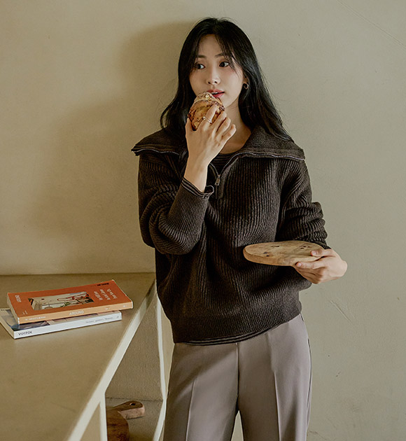 가을부터 겨울까지 활용하기 좋은 포근하면서도 든든한 반집업 니트! 다양한 이너를 껴입어 레이어링하기 좋은 여유핏이며, 까슬거림 없는 부드러운 터치로 착용감이 편안해요~