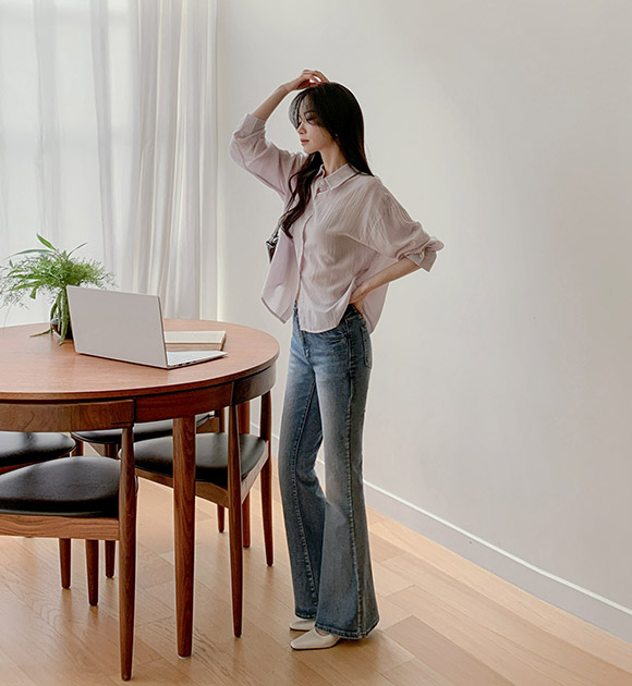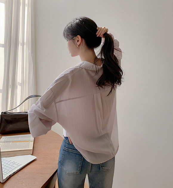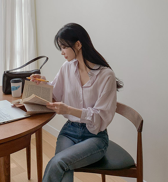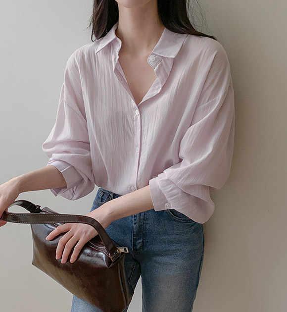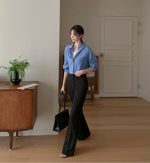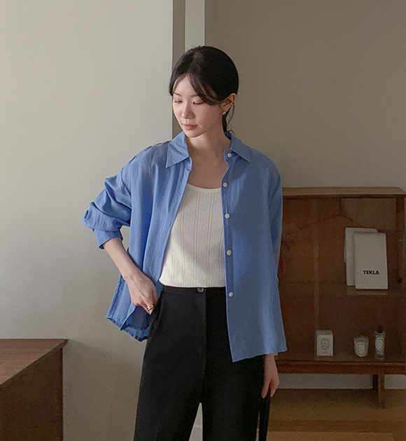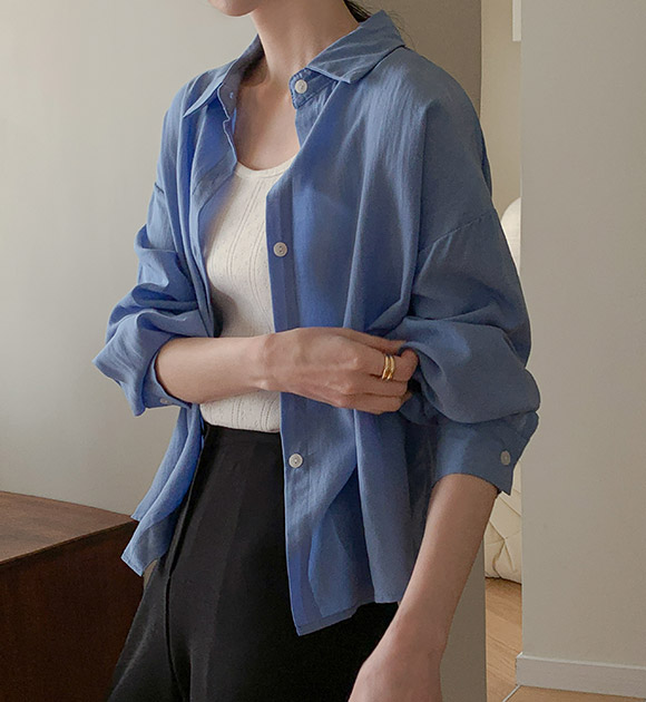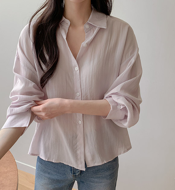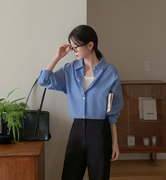 가벼운 소재감에 흐르듯 떨어지는 실루엣이 심플하면서도 매력적인 셔츠에요 다양한 하의와 매치하기 좋은 세미크롭 기장감으로 데일리룩에 활용하시기 좋답니다