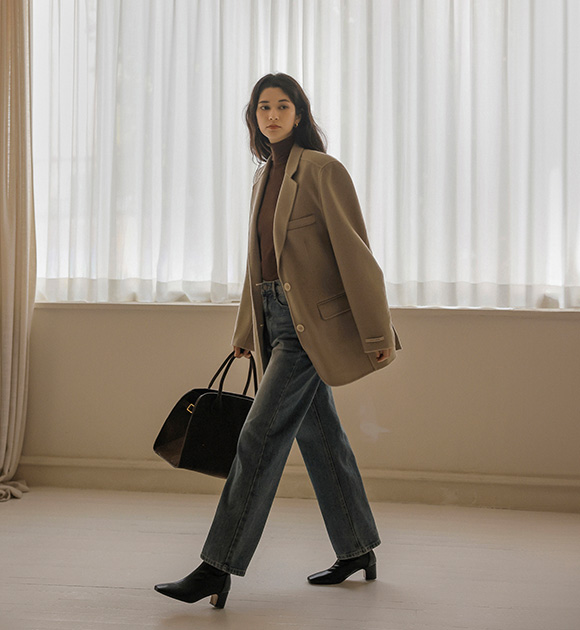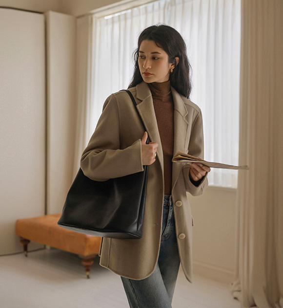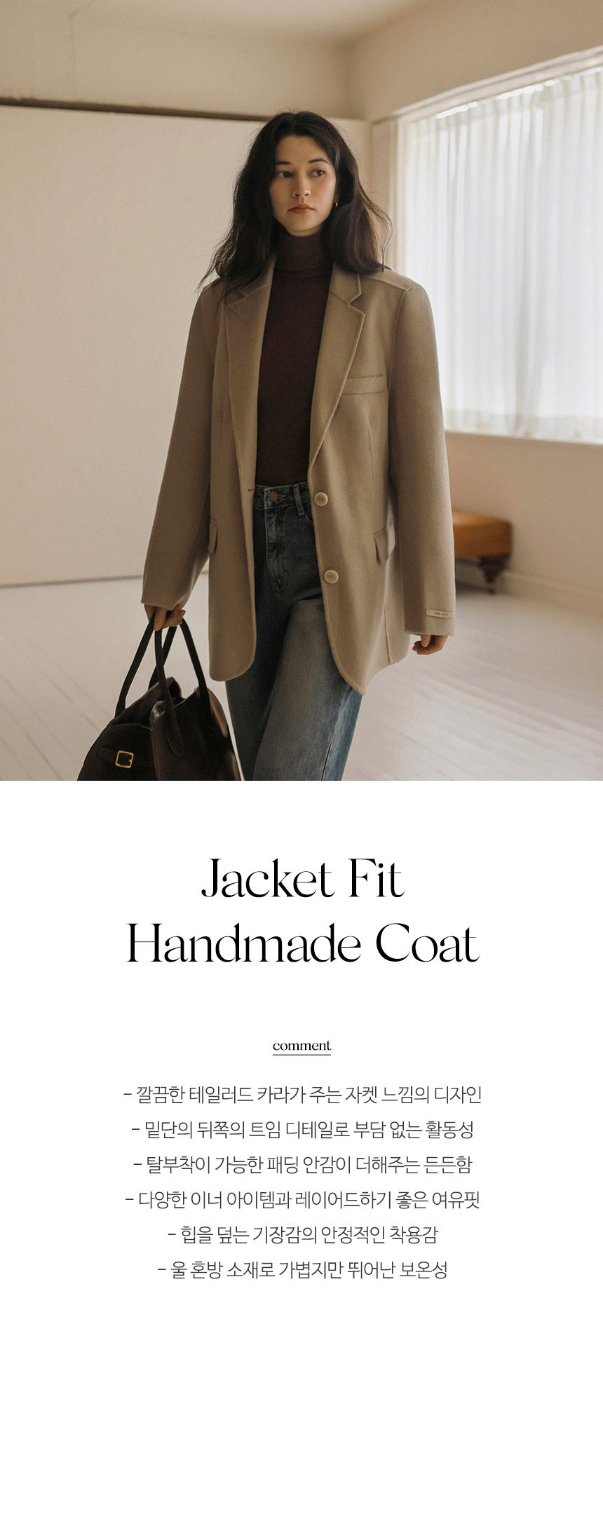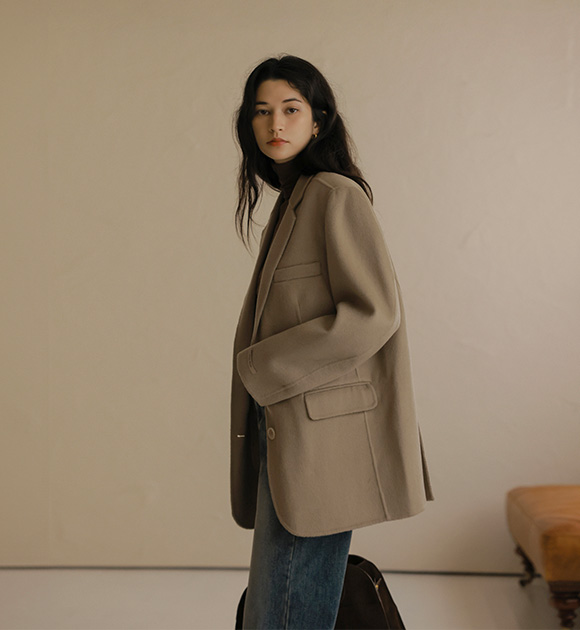 하프라인까지 덮어주는 안정적인 길이감 덕분에 활동하기에 편안하고 울 혼방 소재로 가볍고 따뜻하게 착용 가능해요! 탈부착이 가능한 패딩 안감 디테일까지 자켓 느낌의 코트 주천드려요~