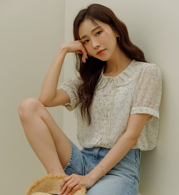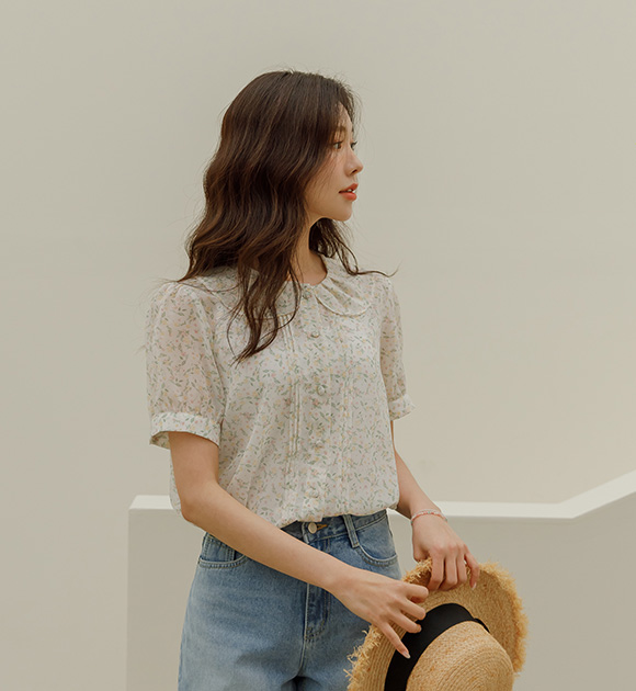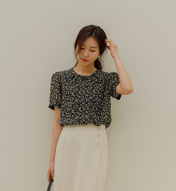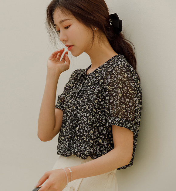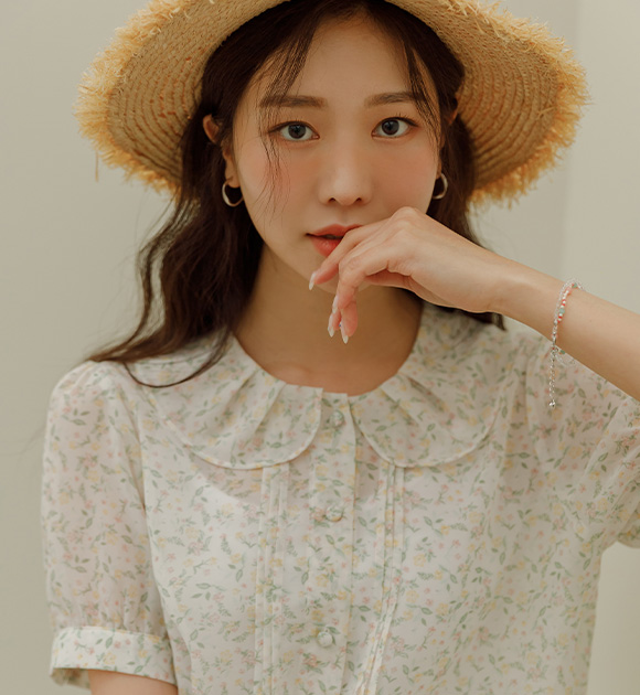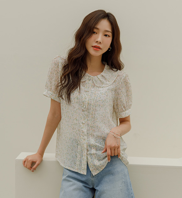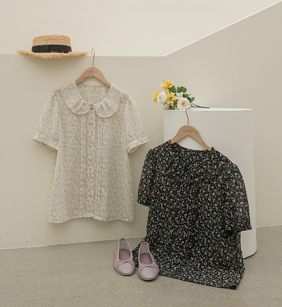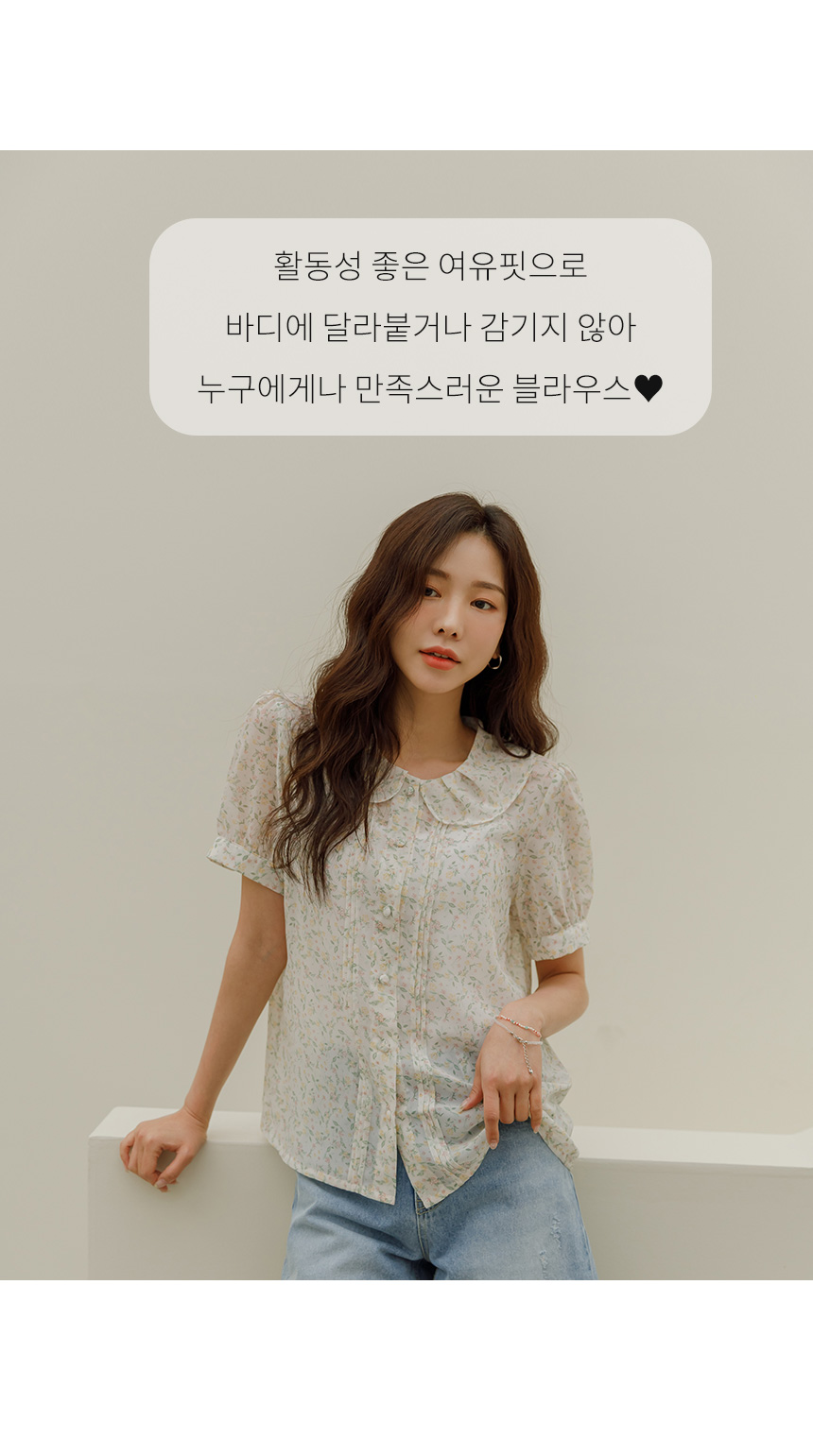 5OA0586HH_화사함가득 셔링카라 꽃블라우스