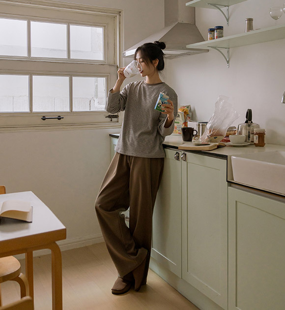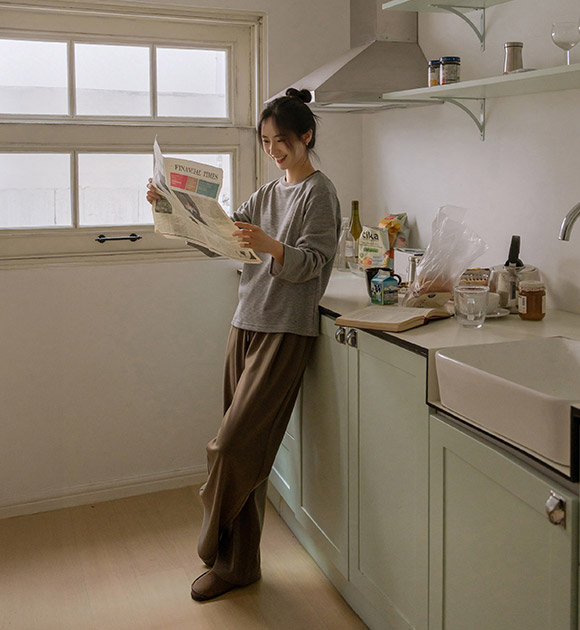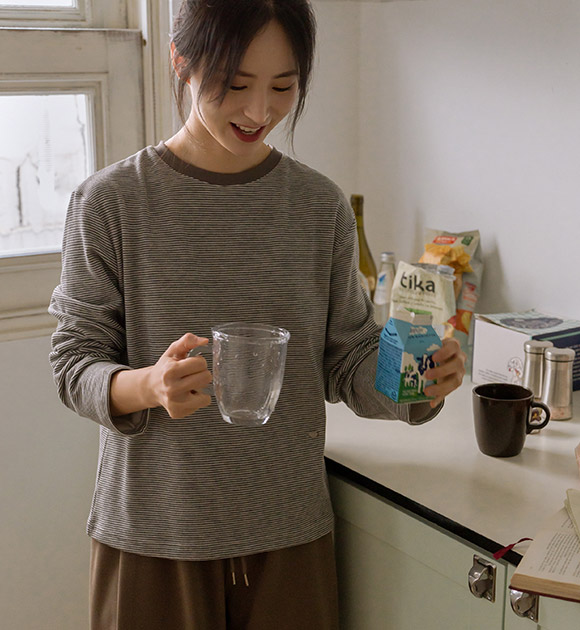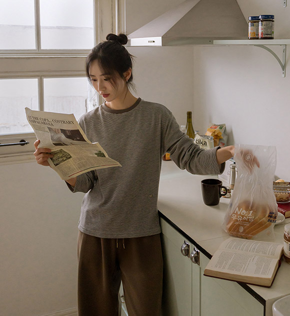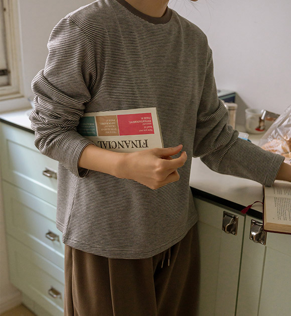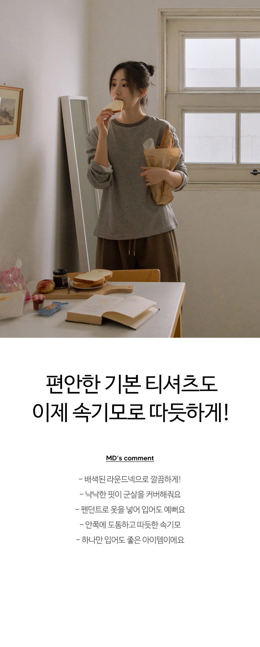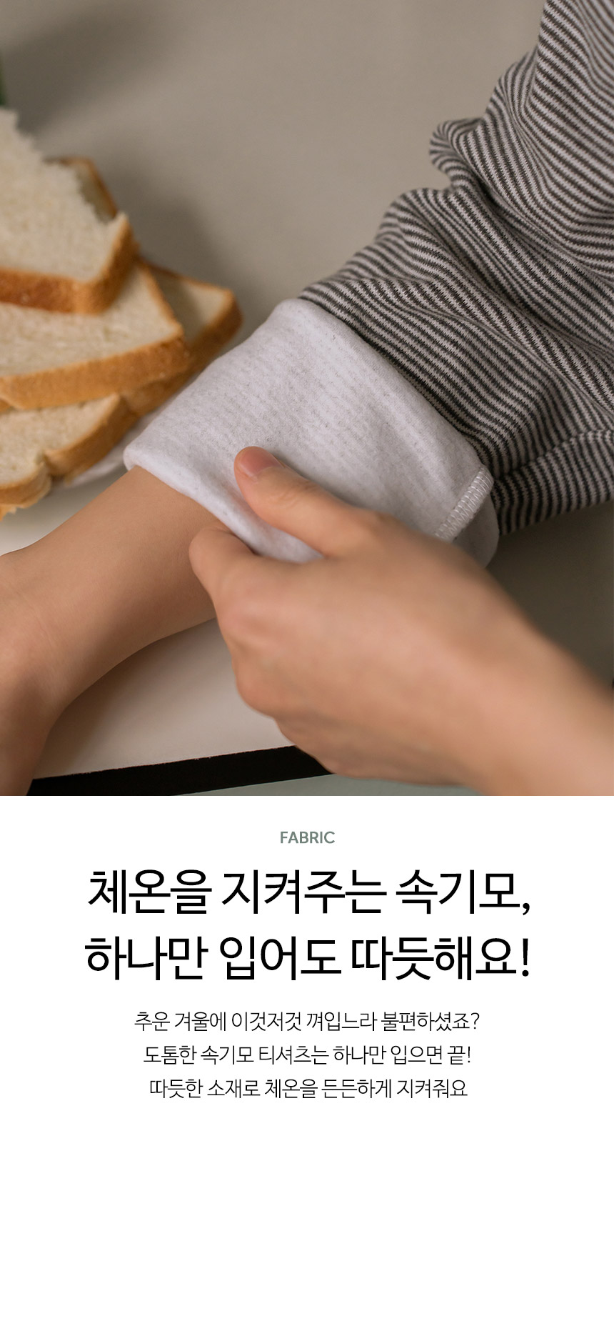 껴입을 필요없이 도톰한 기모 티셔츠 하나면 끝! 캐주얼한 단가라 패턴에 속기모 소재로 따듯하게 입는 겨울 아이템이에요